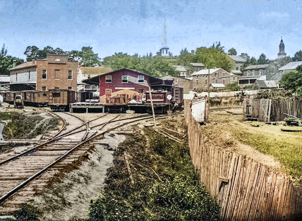 Colorized picture of Warrenton taken sometime in the mid-1800's.