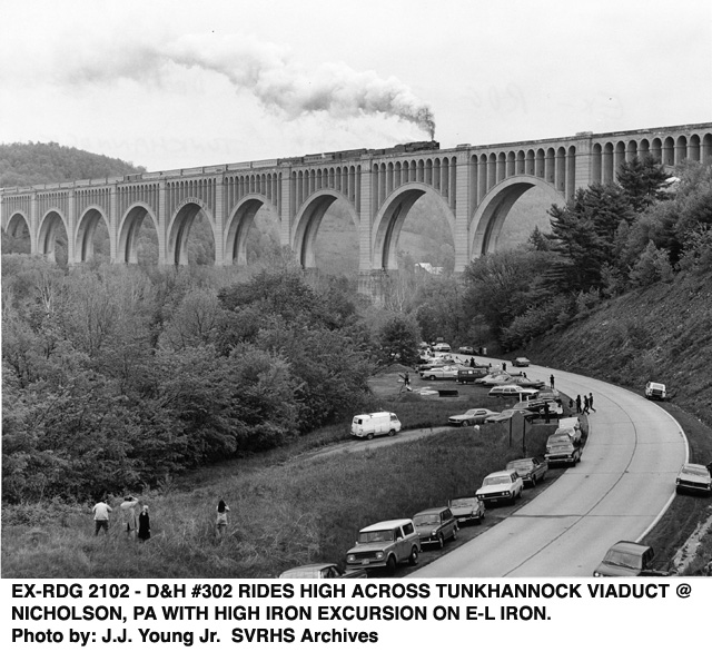 | Ex-RDG 2102 as D&H 302 on Tunkhannock Viaduct