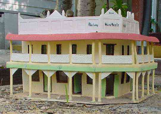 (2) Hunter's Hotel at Lilyvale was made by my wife from pottery. It's a typical Aussie design, but the slight wobbles due to the firing process give it an Ettamogah pub feel.