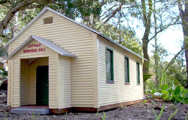 (11) Lilyvale Memorial Hall is made from individual styrene strips glued over plywood.