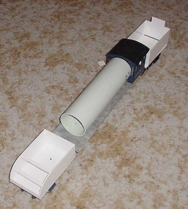 The cab is the original Bachmann with a styrene back wall. The 2 tanks are made from 1.5mm styrene sheet overlaid with 0.5mm sheet onto which the rivets are first embossed with a sharp point.