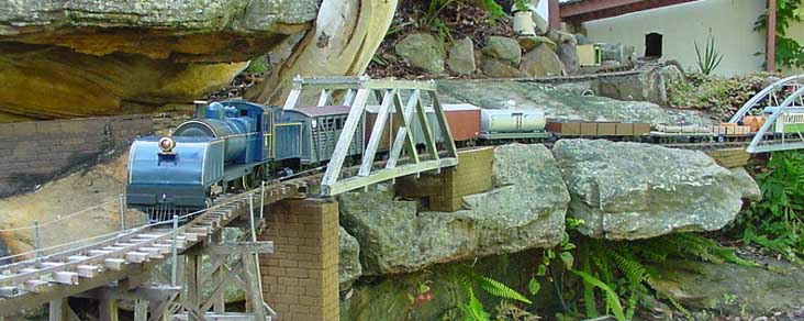 Ironbark is a favourite photographic spot. Here's a closeup of the first revenue run trying a start on the 1:25. Easy! The train of 11 wagons stretches way back into the 'cave' at the top centre of the right pic.