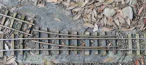 (5) My design of swivelling turnout has no frog and so no electrical problems and no close tolerances.