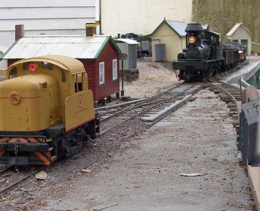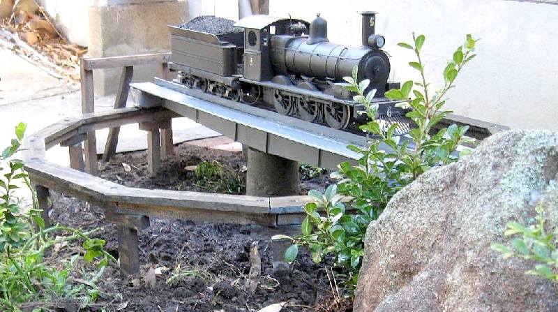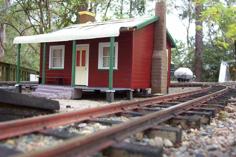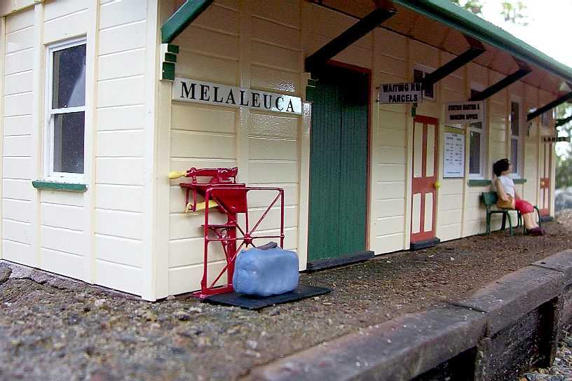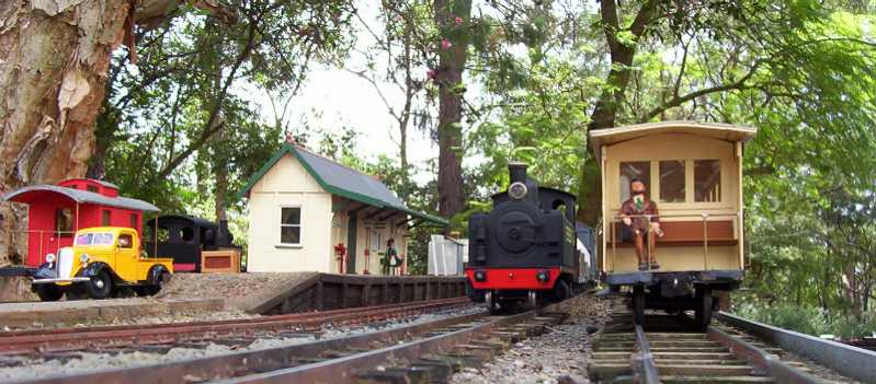 Melaleuca is on a raised 'baseboard' 20' long and 3' wide. There is storage for buildings underneath. There is an 8' station platform and 3 loops each 14' long. Also 4 sidings allow plenty of space for shunting or for visitors to place their trains on the track.