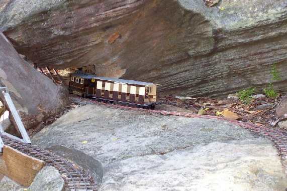 Another aerial shot, taken standing on top of the cave, showing the train heading uphill into the cave and on to Ironbark and Termite.