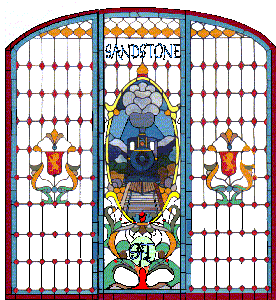 There is also an imposing stained glass window featuring a train (copied from the real thing in Dunedin NZ). I scanned a photo of the window, made a few changes to include the wordsd Sandstone and S&TR, then mirror reversed it and had a printer print it on clear plastic sheet. I have placed aluminium foil behind the 'glass'.