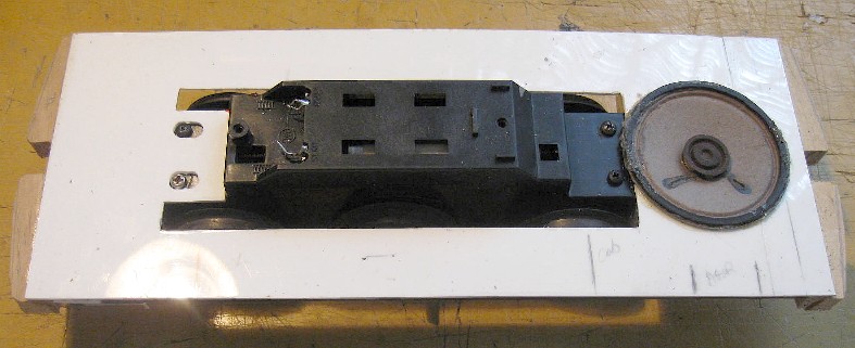 The body baseplate came next - 2 thicknesses of 1.5mm styrene. The only place I can fit a speaker in is in the floor of the cab.
