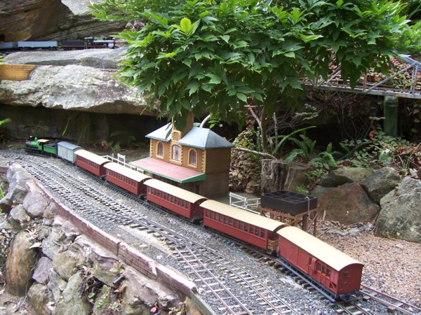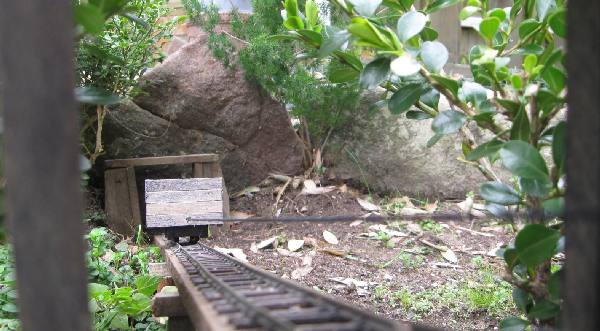 I had an old 2' radius turnout, so I put in a siding using old aluminium bar rail. Maybe there will be a mine or something there later.