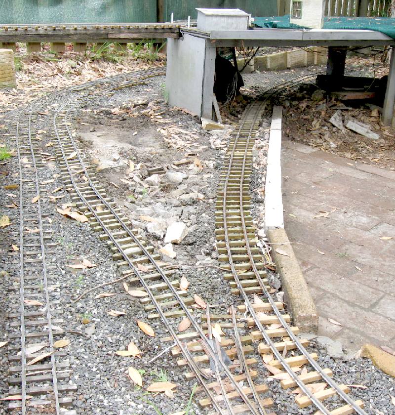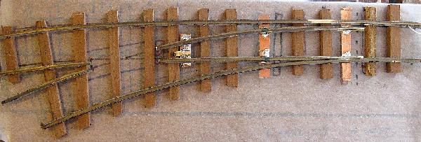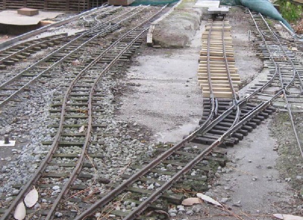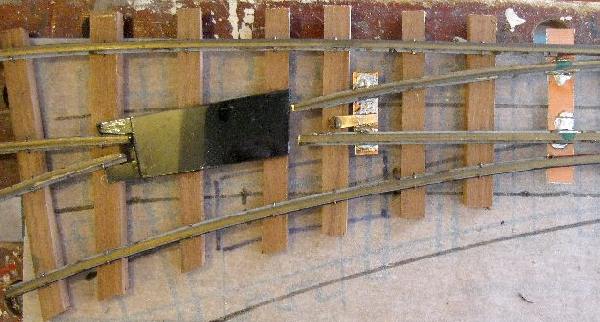 Mark Hobbs was kind enough to donate an old LGB 'right angle' set of points, so that I could install a dock siding at Melaleuca. I straightened the curved bit beyond the frog and it was a perfect fit to lead into the siding.