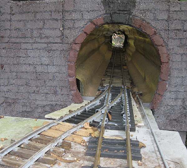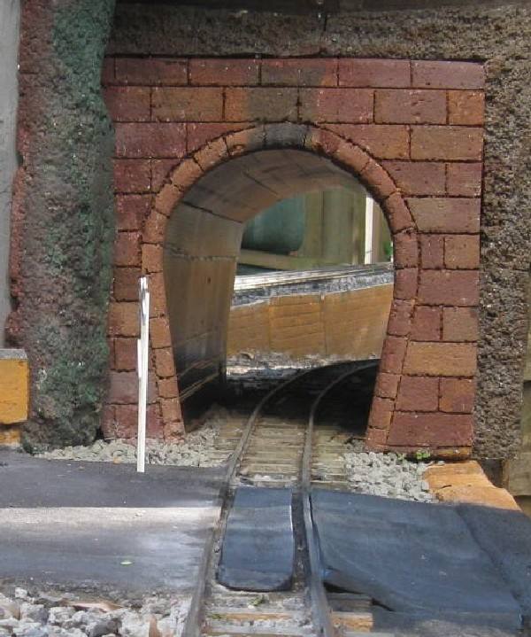 A new tunnel mouth for the corrugated tunnel at Blackwall. (Actually the 'tunnel' is curved corrugated sheeting used to keep leaves off the track behind the garden shed.)