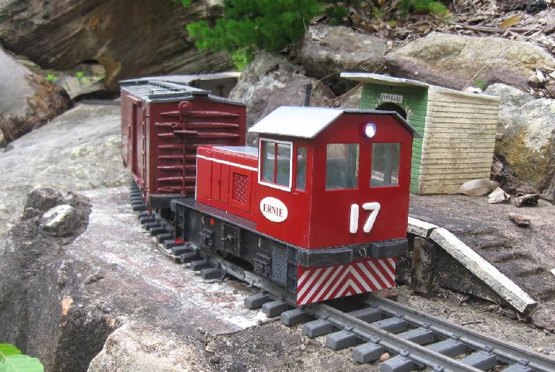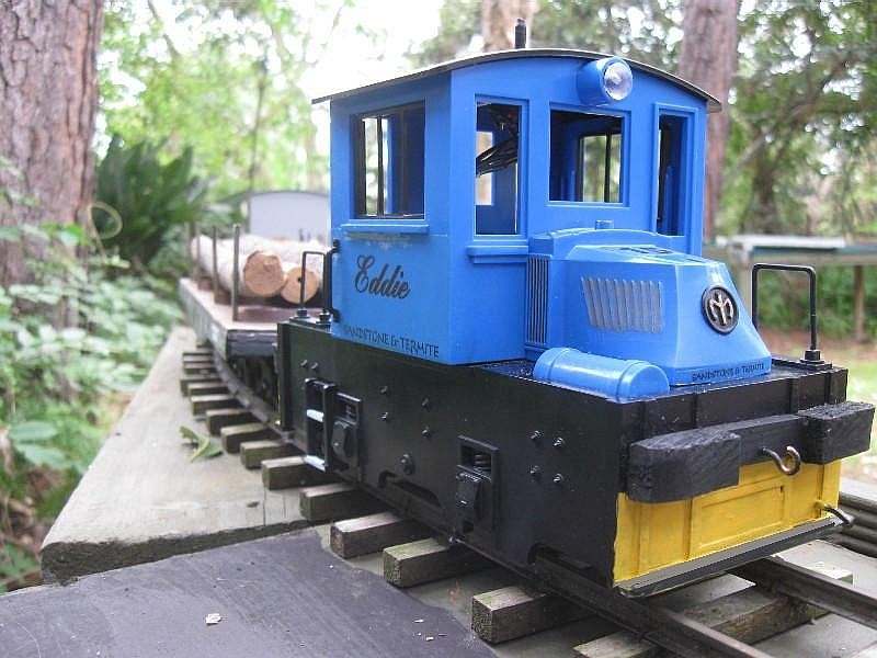 I converted the Hartland "Mack" loco to battery power. It has 5 NiMH cells under the 'skirt' and a forward/stop/reverse switch on the cab roof. It potters along at around 20 kph. Added a few details and named it for grandson #3, Eddie. here's a short video