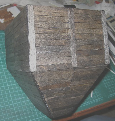 Work continues on the gravel/coal loader. All paddle pop sticks glued on and weathered using black shoe polish. I'll paint with clear satin varnish to finish. Not every railway can say they polish their coal bins!!