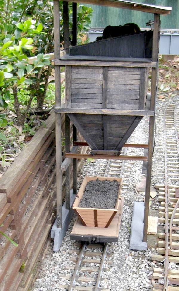 The coal loader is all finished, with a HO track feeding from a mine entrance, and a small coal skip (static).