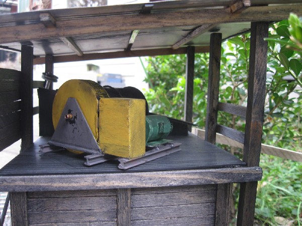 Another reason for putting it at Melaleuca is that I have power and an amplifier there (for the cow sounds) that I can use for the sawmill sounds. The saw blade does turn and the drive belt operates, if I get round to wiring it all up.