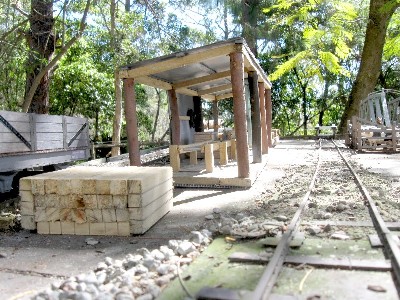 This old trestle bridge at Melaleuca had to go to make way for the extra track and station underneath. (there used to be a trestle right where the wagon is.) It was just a couple of pieces of tomato stake and had been there since 1995.