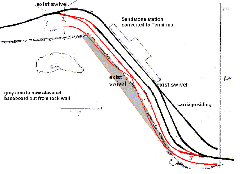 Plans for a 3rd loop at Sandstone and new sidings were drawn up but I'm still deciding whether I should put a turntable back or not. First step will be something like this.