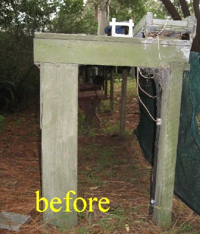 The 'baseboard' at one end of Ti-tree had been lifted by a large pine tree root nearby. This was causing the adjacent lifting bridge section to become mis-aligned. (You can see the bridge at top right in its folded up position.)So to remedy the situation I cut 15mm from the leg supporting the baseboard and braced with steel bar. And I left plenty of adjustment in the metal holes for future reductions in height too.