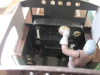 Here's some pics of the cab - the speaker on the rear wall and the firebox front. The driver can't find the regulator handle (yet).