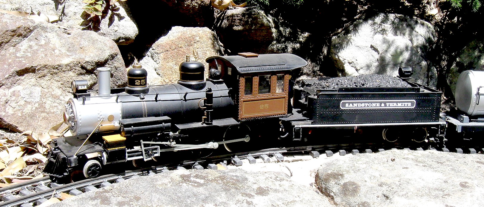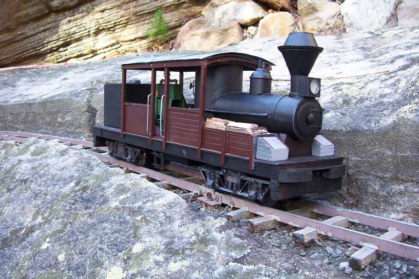 (29) An open cab outside frame loco. Hobbyking 2.4GHz RC with a Pololu centre off ESC. Uses my sound system.