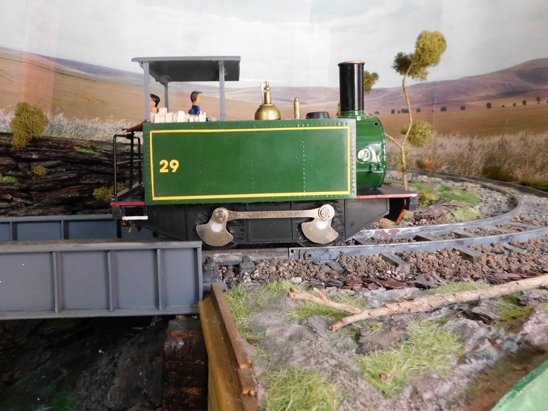 (19) Scratchbuilt larger diesel on Aristo motor block. It has 2.4GHZ RC with a LiPo battery and additional electronics to ensure the diesel rev sound builds up before the loco accelerates. The driver rotates to face the direction of travel!