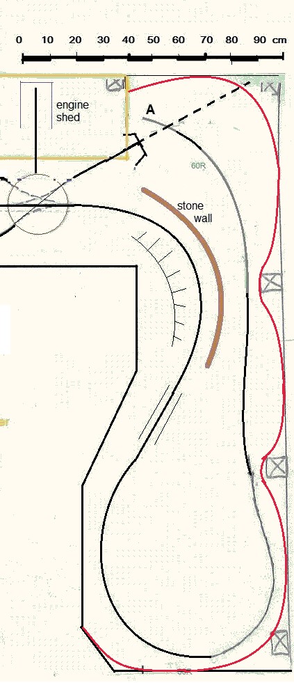 The crux of the whole small layout idea, allowing space saving, is the 'circular turnout' which I have devised.