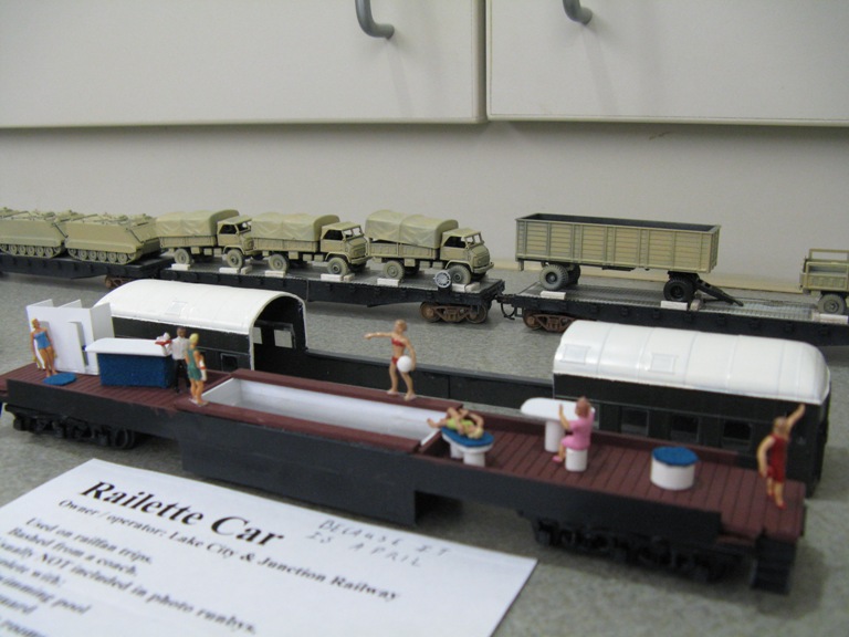 Clinic: Turnout Building - Bill Gary brought his FASTTRACKS template for building HO Dual Gauge, Standard Gauge, and Narrow Gauge turnouts, and displayed the Frog and Point rail tool used to quickly manufacture No. 6 switches. The jig makes it possible to make left and right turnouts in any combination of standard, narrow and dual gauge turnout with the narrow gauge on the left side of the turnouts. Gary's club member Tom also has the opposite matching turnout jig with narrow gauge on the right enabling them to make any combination of No. 6 HO turnouts. Video: American Railroads - The History Channel NEXT MONTH: May 1 Division Meeting Activities: | |||