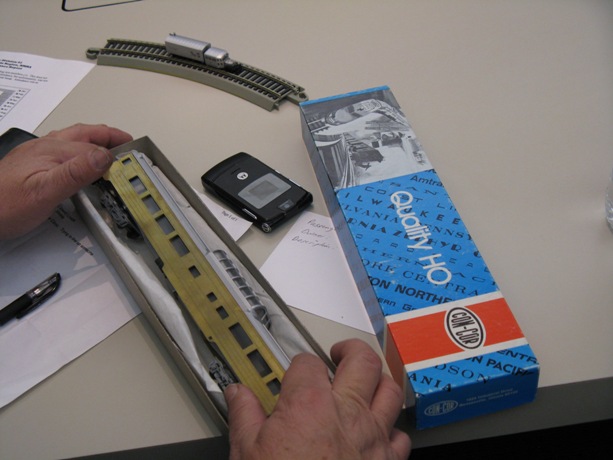 | Don Francis' HO Scale kits with brass car sides, in various stages of assembly. |