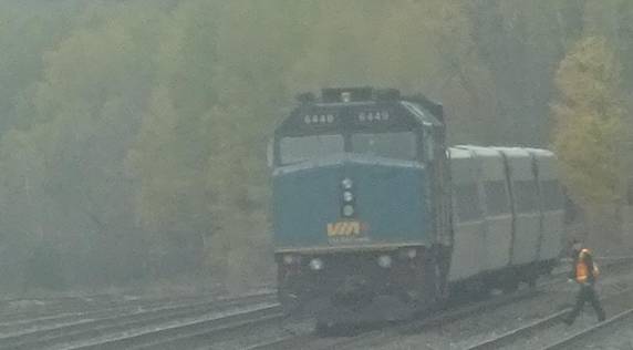 I then went into the station to wait for reboarding of my train. A VIA employee in a wig and a witch hat started the boarding process. I was seated in the same coach as earlier. The train left on time.