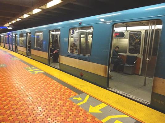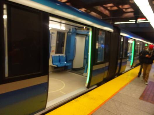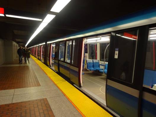 I then boarded a newer LFS back to the Metro station and boarded a train of MR-73s. I rode to Monk station. When I got off, I filmed the train pulling out.