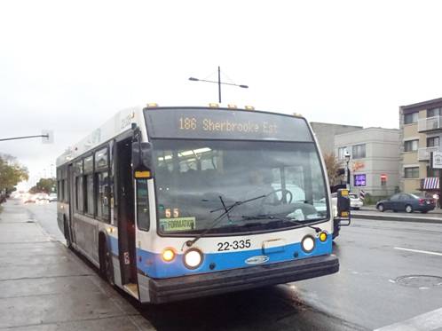 I saw LFS #22-335 was going into service. I photographed it before I boarded it on route #186. I rode the bus a few stops and got off and photographed the bus before I filmed it pulling away.