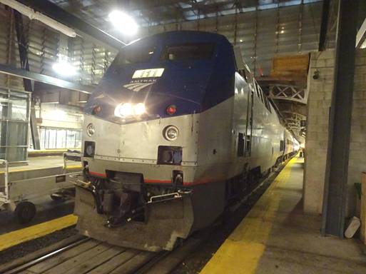 Boarding soon commenced. I was seated in Amfleet 2 coach #25062. After putting my stuff in the seat, I stepped off and watched as P42 #111 was coupled up to the train. I photographed it and filmed the coupling move.