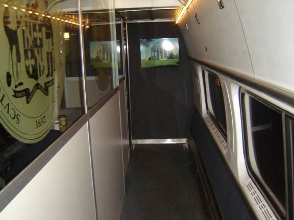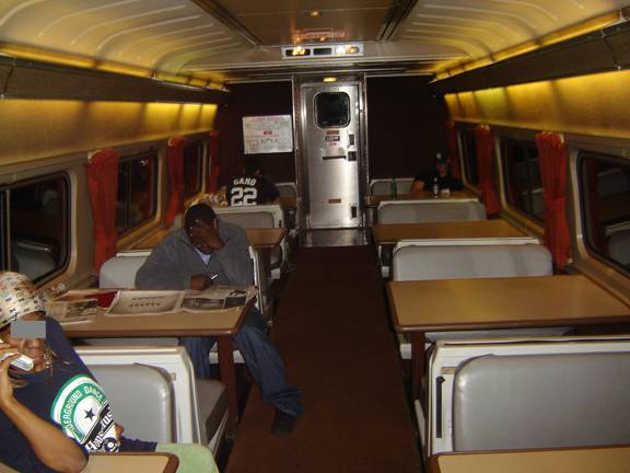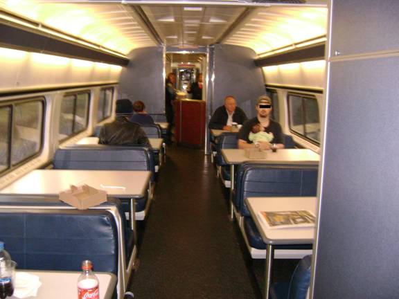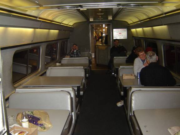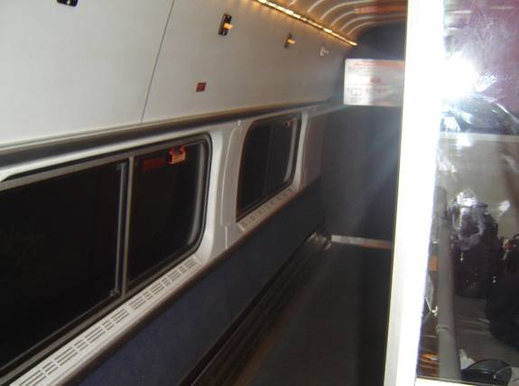 The third interior configuration was unveiled in late 2006-early 2007 as the diner-lounge. They were first used on the Cardinal and then they replaced the heritage dining cars on the Lakeshore Limited and a Horizon café car took over the roll as the lounge car on the Lakeshore. However, I took the following photos on my Cleveland Make-up trip when the car was being used as the lounge car at the time. The cars have steam tables and a large reefer. A Steward’s office was also installed.