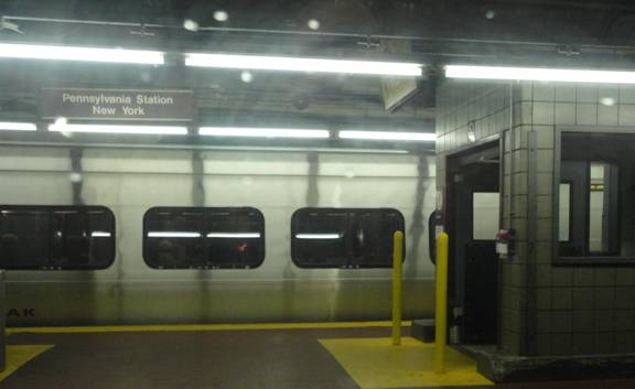 After awhile, the Acela departed. Moments later, the Vermonter departed. We passed through two tunnels before emerging outside. It was raining pretty hard. I phoned Dan and let him know where I was. He said he'd meet me on the platform. We passed a northbound long distance Amtrak train. I filmed it.