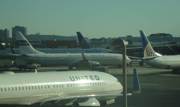 We taxied to the end of the runway. I photographed two Continental 757s as they took off and a Continental Connection Bombardier Q400 as we waited for permission to take off.