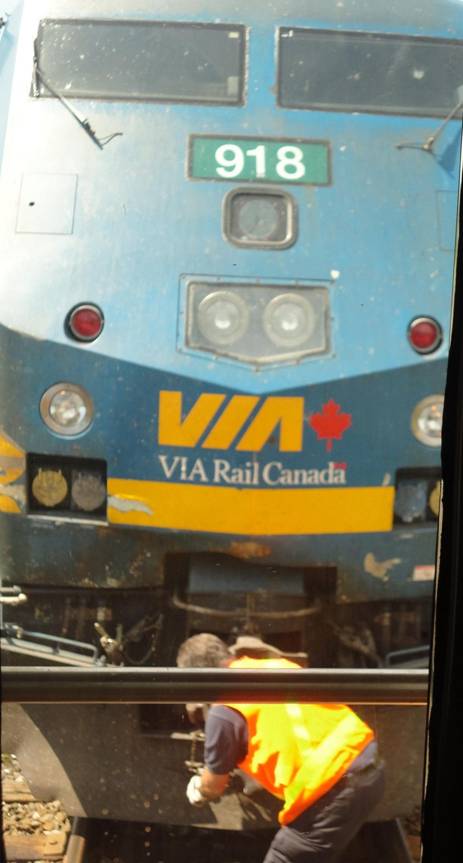 I saw VIA train 24 a few tracks over. I saw that it had a refurbished LRC coach in the consist. I photographed it.