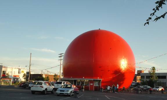 I looked around the area before I had dinner at a place that looked like a giant orange. I photographed it before I had dinner.