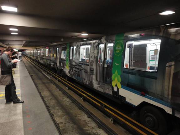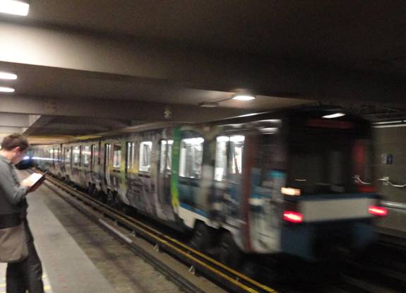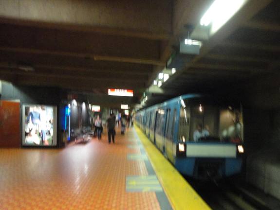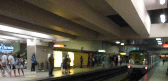 I thought bus route 108 would take my by CAD, but it wasn't the case. I rode the 108 back to Lionel Groulx and got on the Green line. I rode to Beaudry. This time the train was the older cars. I filmed the train pulling out before I caught a train back to Barri-Uqam. I photographed the train when it arrived.