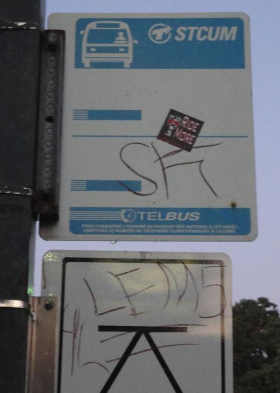 I rode the train to LaSalle. I was hoping I could ride a bus by CAD which is where VIA's F40PH-2s are being rebuilt. At LaSalle, I photographed an old STCUM bus stop sign