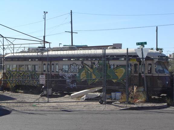 I knew that 4608 was part of Old Pueblo Trolley’s collection of historical streetcars, but at first, I could not see any streetcar tracks nearby. As I walked east, I saw that a block away there were streetcar tracks and Old Pueblo Trolley’s carbarn. I then headed back to the Greyhound station.
