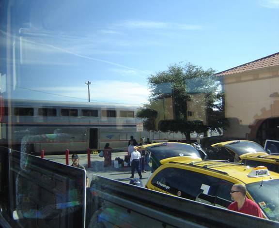 The bus left the station where we went onto the highway. From the highway, I could see the rail yard east of the station. I even saw what appeared to be a former Amtrak F40PH on a siding that was painted light blue. I had no idea which company the unit belonged to.