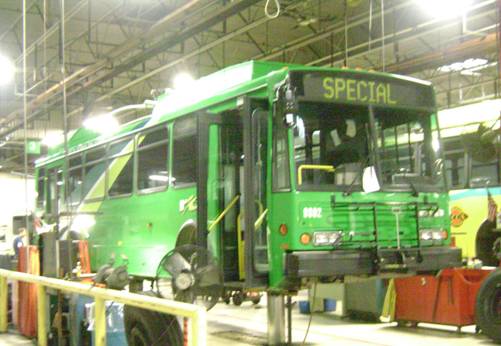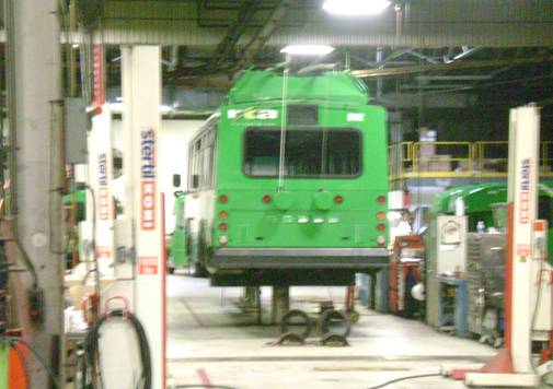 We then went into the maintenance area where I photographed Skoda trolley #9802 on a lift. 9802 is the other Skoda to be painted in RTA’s new Livery. I also photographed other Skoda buses in the area.