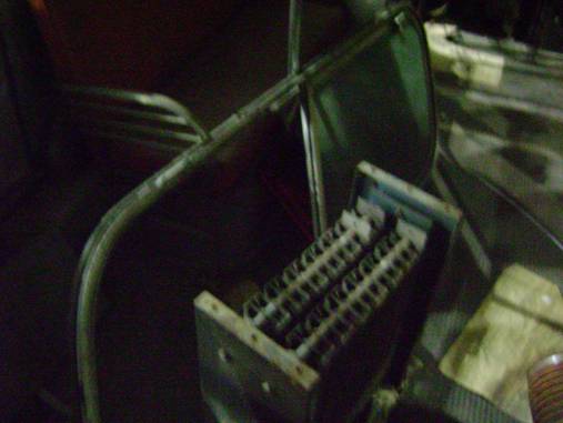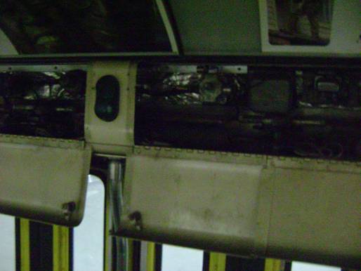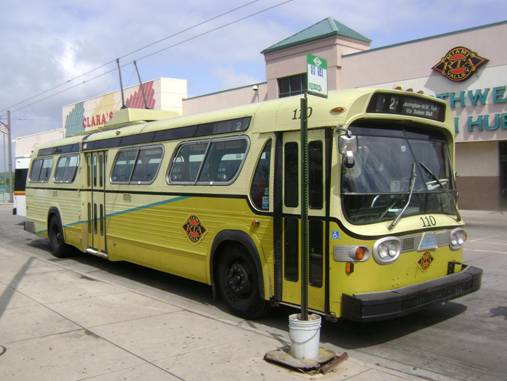 I got on and photographed 110’s interior. 110 had been modified since it arrived. Its front doors were altered to allow for the instillation of a wheelchair lift. However I’ve heard the lift didn’t always work. They also put a wheelchair tie-down area inside 110. They also covered some of 110’s orange seats with black covers though several seats still were orange.