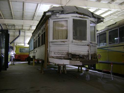 Beside 9601 was the body of an old interurban car. I photographed it.
