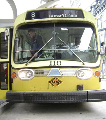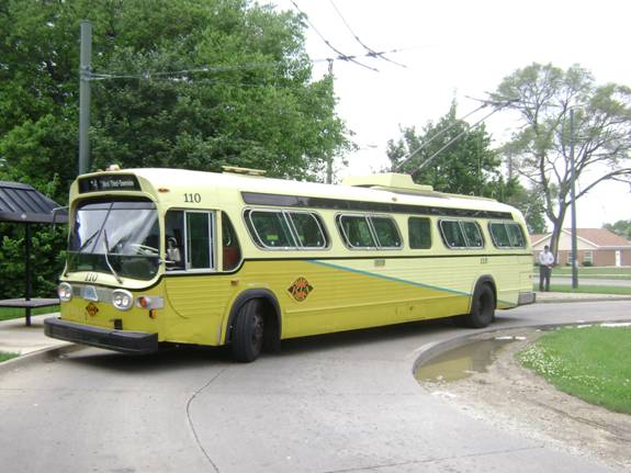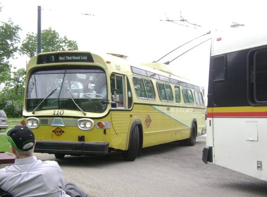 I got back on the bus and we soon left. As we were driving along, I heard that all the work to make 110 operational was done at the Longworth garage. Plus 110 was actually pushed across town to the Longworth garage; not towed.