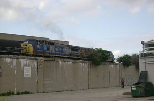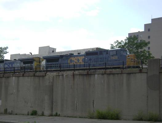 I wandered around the area looking for an internet café or any place with internet access without success. I walked over to a railway overpass and waited around. A few minutes later, a CSX freight passed which I photographed.
