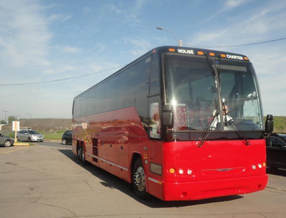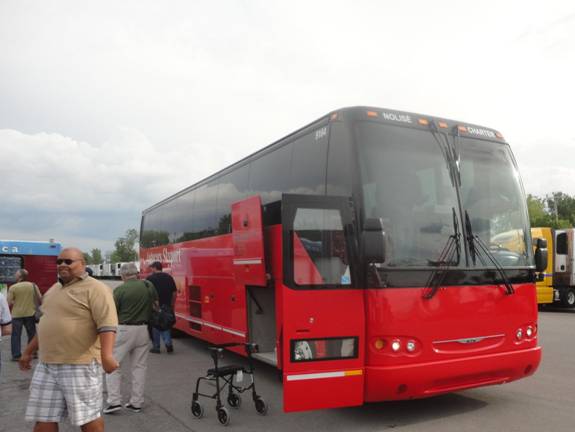 demo bus. I got my cell phone back and noticed the charter bus was parked at
