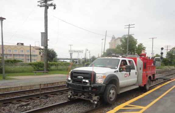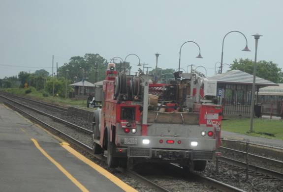 The truck then headed back the way it came. I heard the railfans say the CN RTC was canceling its clearance. The other railfans soon left.