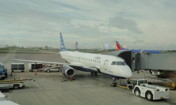 Jetblue flies two types of aircraft: Airbus A320s and Embraer E-190s. I would be flying on an E190. Boarding of the flight began around 5:15 pm. Just before they closed the doors, a someone on the plane realized he was on the wrong plane and scrambled to get off. How no one caught this I don't know in a post 9-11 world!