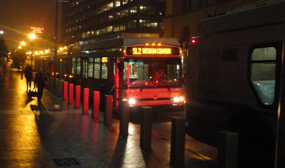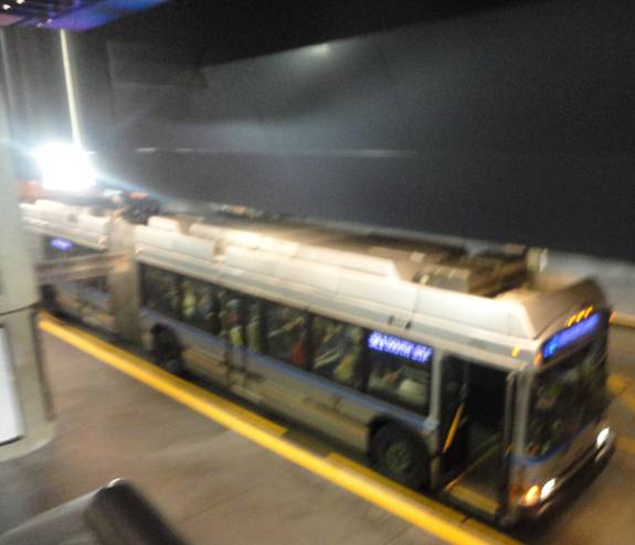 I then went upstairs. I was curious to see if the Silver Line was still loading and unloading passengers on the street or where it usually runs. I went to the usual terminal and waited. A Silver Line dual-mode trolleybus arrived. I photographed it before I got on.