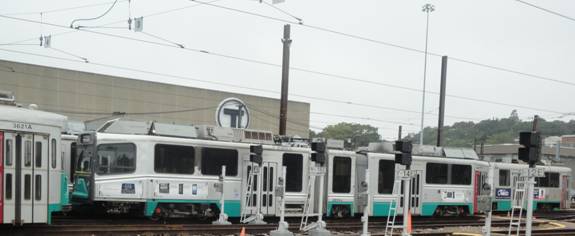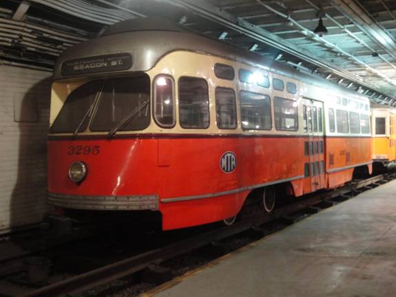 I got on the next train and rode to Boylston. I got off and took some photos of type 5 car #5734 and picture window PCC #3295.